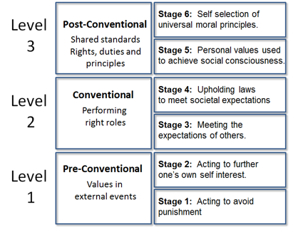 Check out the following article about Kohlberg’s Stages of Moral Development: https://www.britannica.com/science/Lawrence-Kohlbergs-stages-of-moral-development
